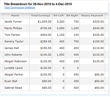 When the member accesses their custom reports page they can view trends and sales activity milestones. They can view what percent of their downline is of a certain title, their autoship status, and who is an up and coming leader in their organization.